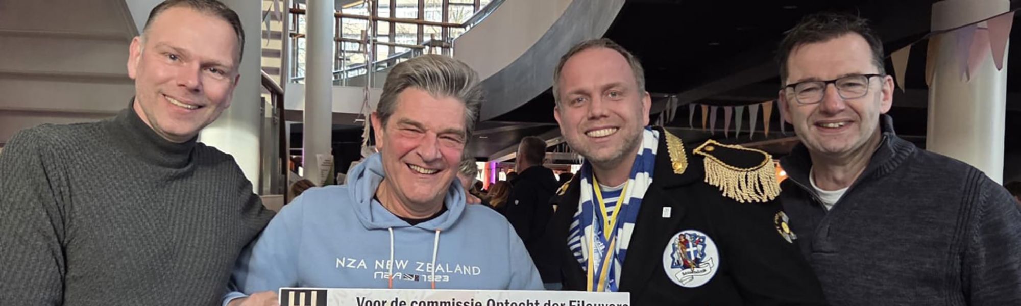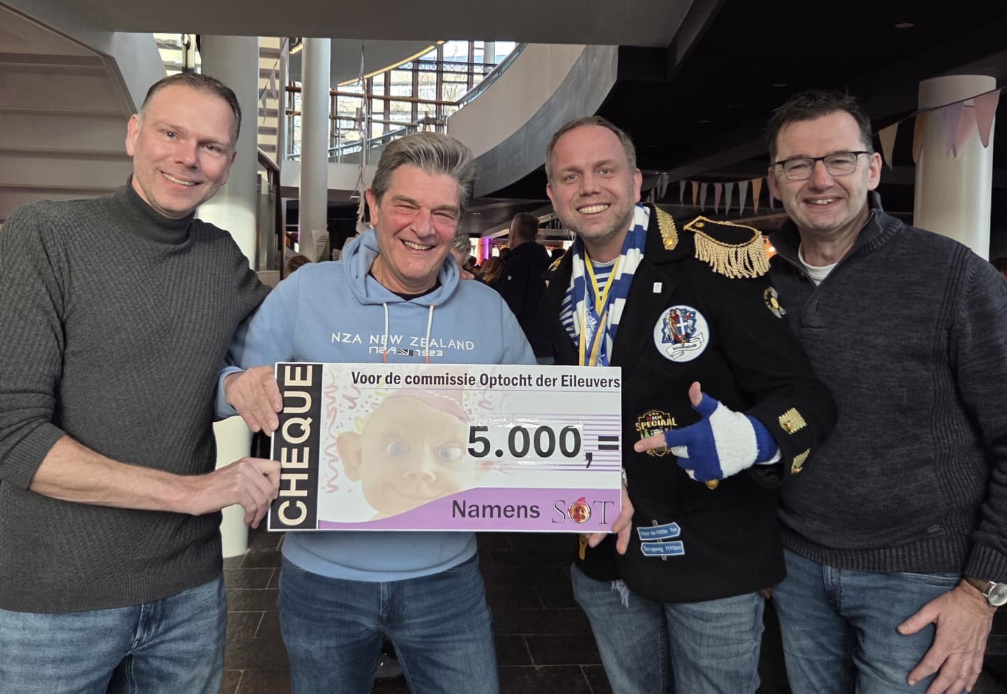 Cheque van € 5.000 uitgereikt aan Sassendonkse Optocht – Tribune editie 2026 al uitverkochtAfgelopen zaterdag heeft de organisatie van de Sassendonkse Optrocht Tribune (SOT) bij De Spiegel in Zwolle een cheque ter waarde van € 5.000 overhandigd aan Hans Kersten, voorzitter van de Sassendonkse Optocht. Links op de foto staat Michael Lipmann, toekomstig voorzitter. Namens de SOT waren Marcel Tijhaar en Kevin Egbers aanwezig.